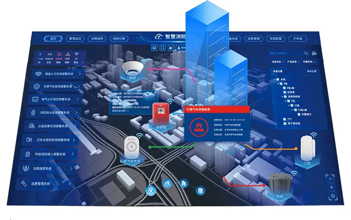 摩登4科技智慧消防解决方案,运用TurMass™ /LoRaWAN/Cat.1/NB-IoT物联网通讯技术,通过独立式感烟探测报警器、声光报警器、手动报警器、可燃气体探测报警器、电气火灾探测报警器、无线远程压力采集终端、无线液位远程采集终端、无线智能消防栓监测终端等为媒介,实现对于消防管理重点场所进行实施预防和管理的新型物联网解决方案。